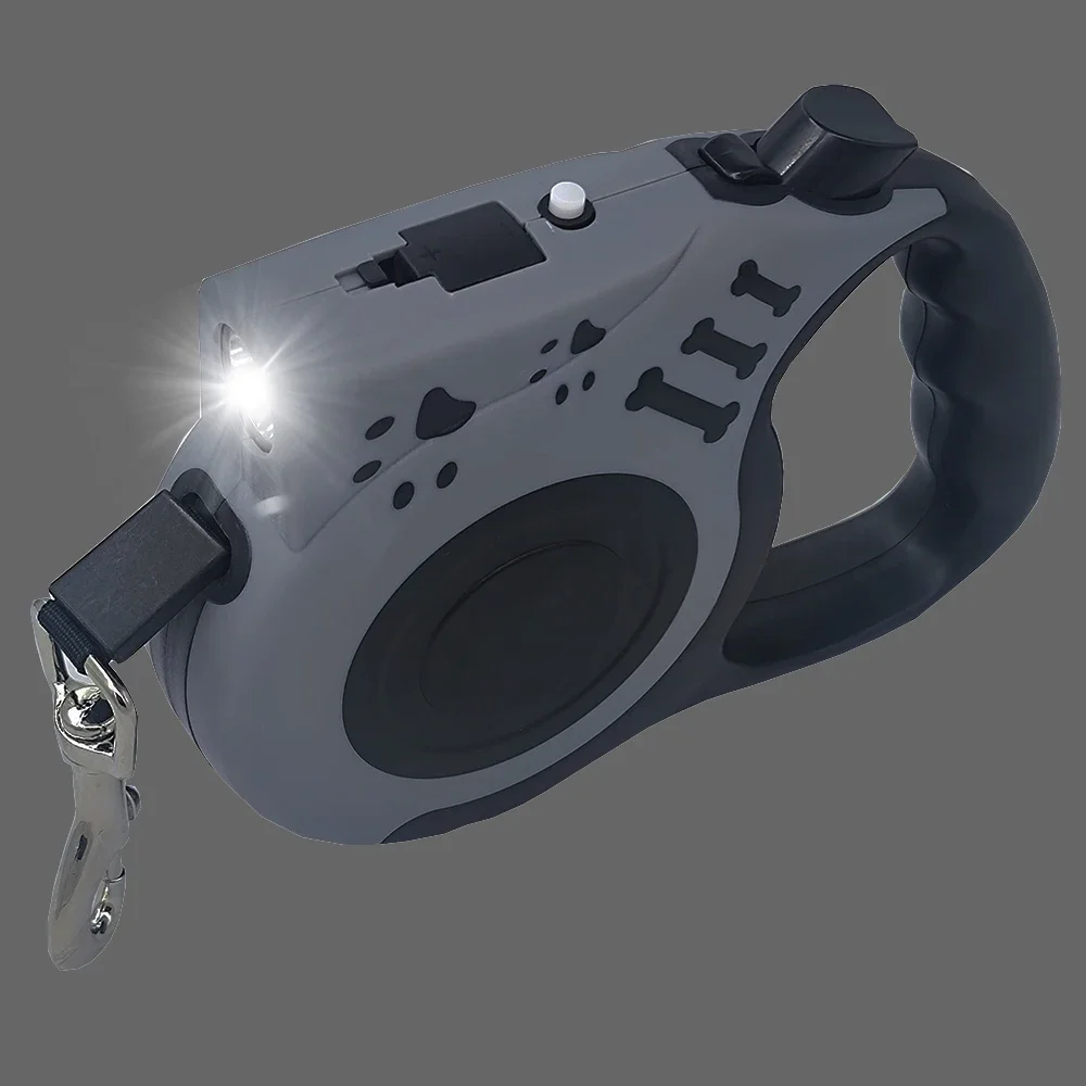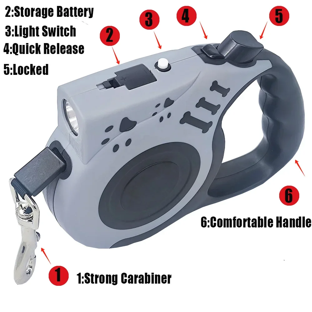 Automatic Retractable Dog Leash with Flashlight LED Glowing at Night Walking